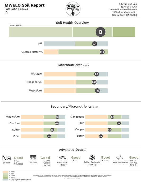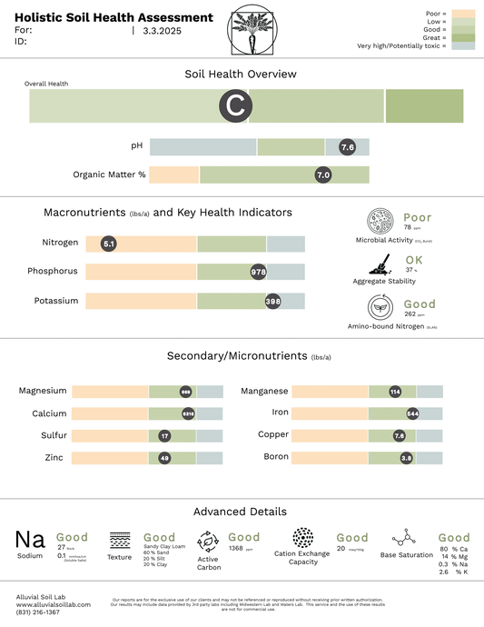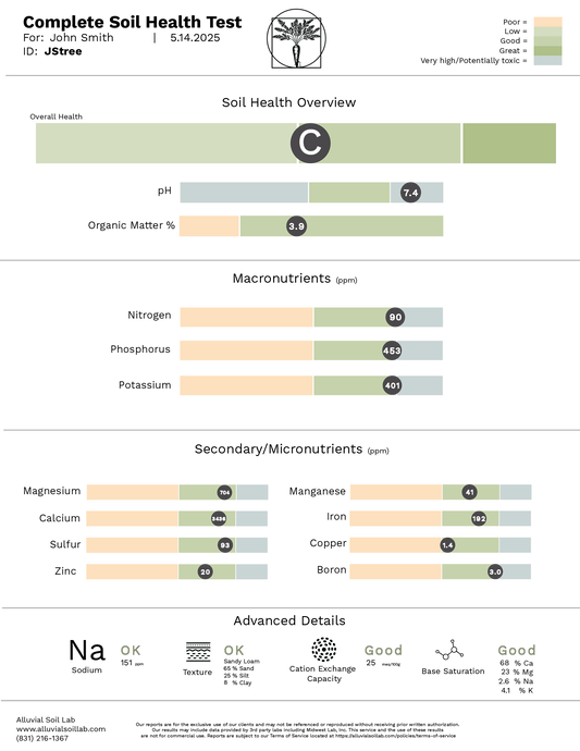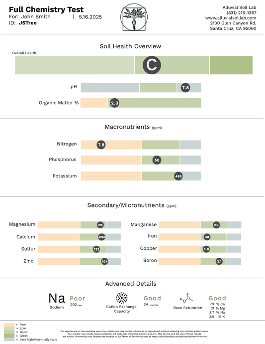 Alluvial Soil Lab provided us with comprehensive tests for our organic soil based greenhouse. The results were easy to read and will surely be a great tool for anyone looking to better understand their own soils.