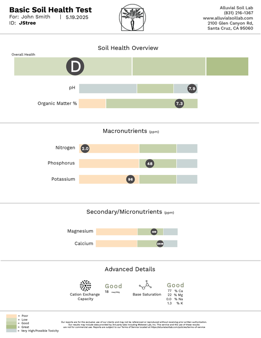 We often recommend the Complete Soil Health Test for gardeners, which provides a comprehensive analysis of soil nutrients, pH, organic matter, and tailored recommendations.