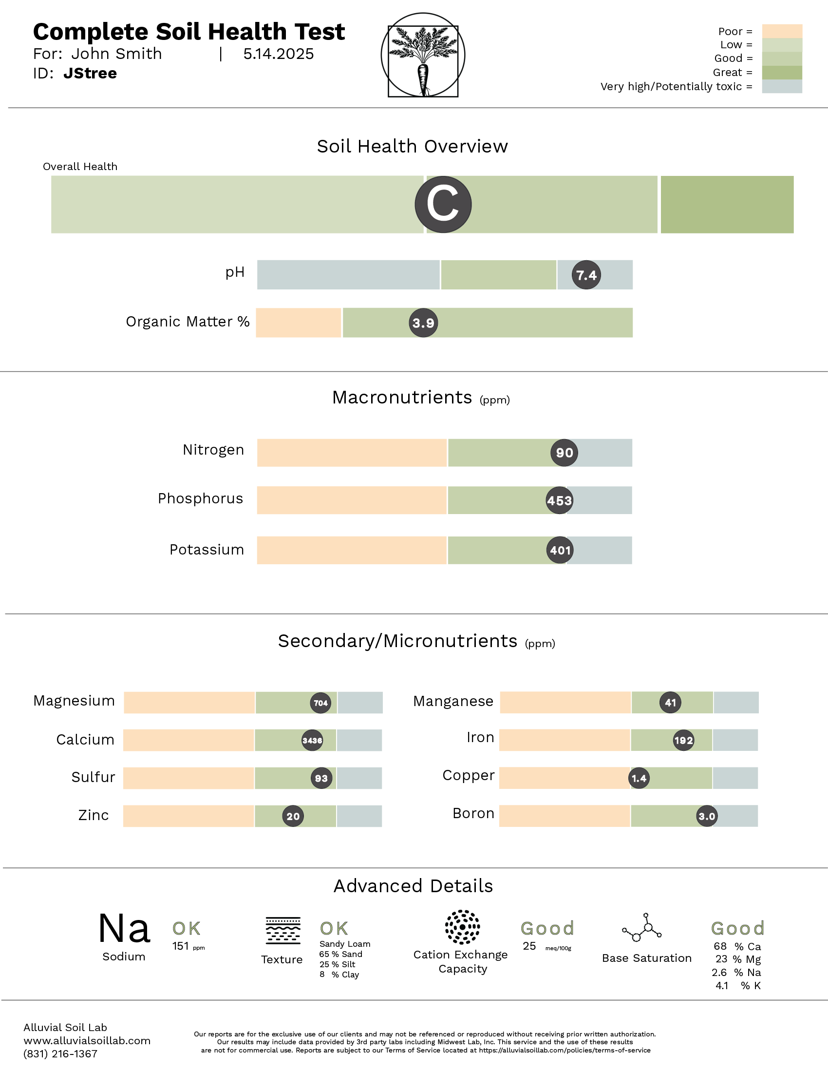 Alluvial Soil Lab provided us with comprehensive tests for our organic soil based greenhouse. The results were easy to read and will surely be a great tool for anyone looking to better understand their own soils.